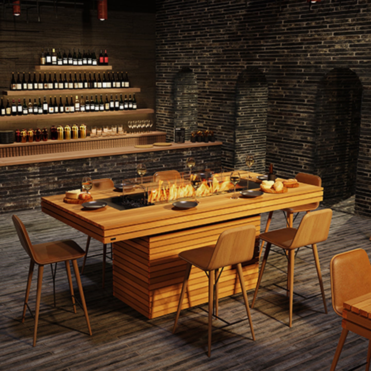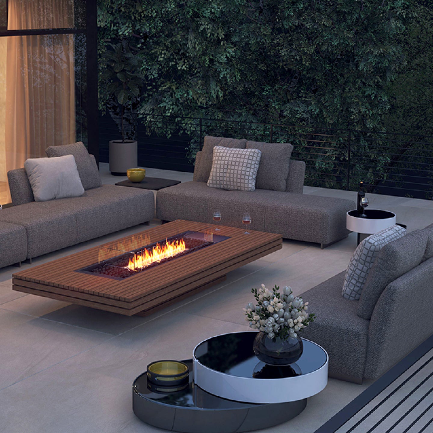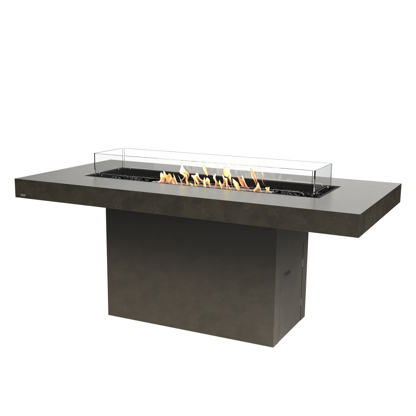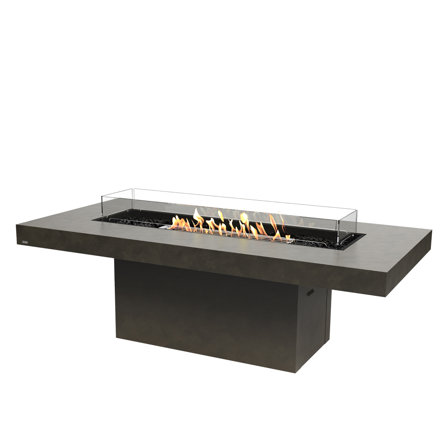 concrete: Fluid Concrete Technology, Grade304 Stainless Steel, Included Black Glass Charcoal, Toughened Glass/ teak: Fluid Teak,Grade 304 Stainless Steel,Burner,Toughened Glass Fire Screen