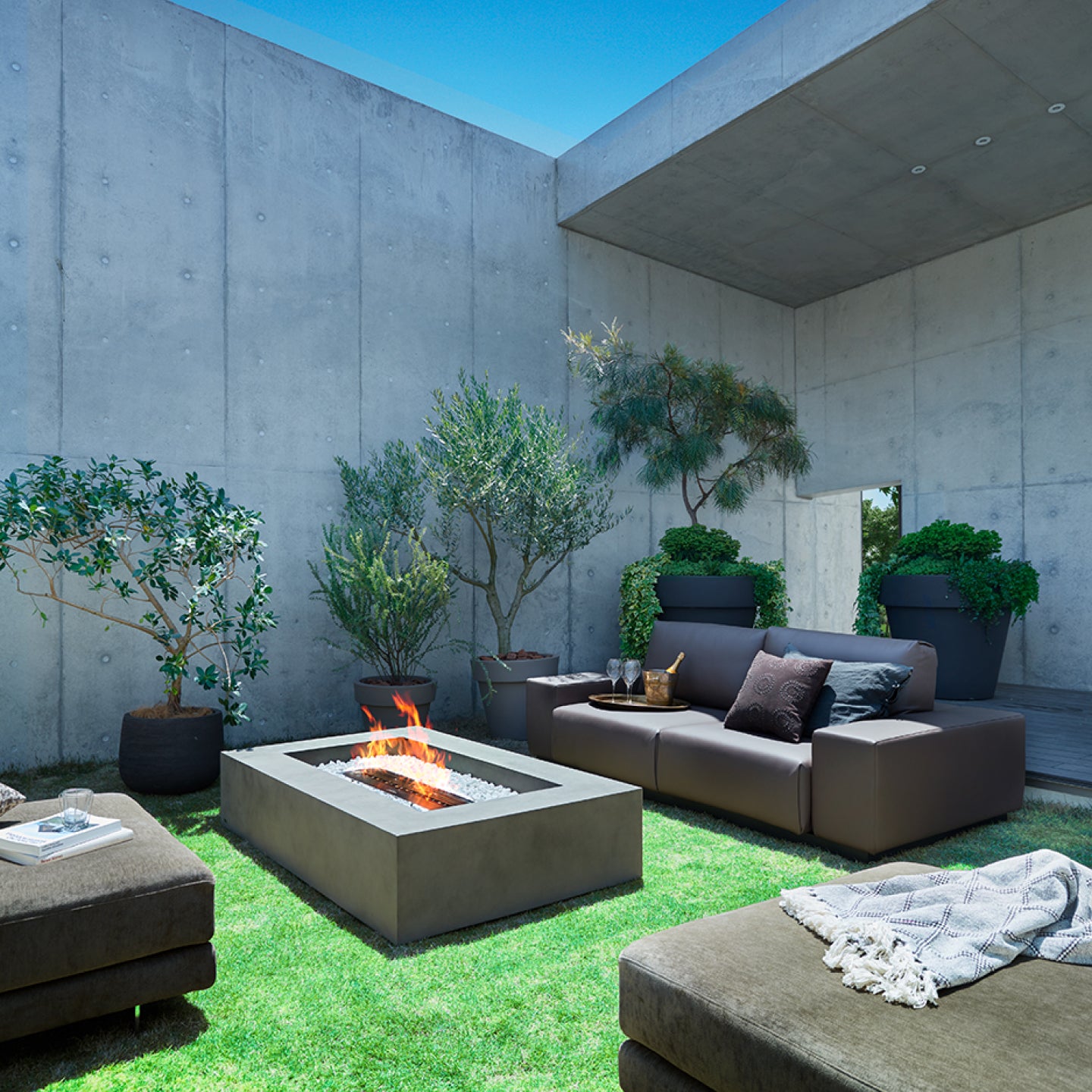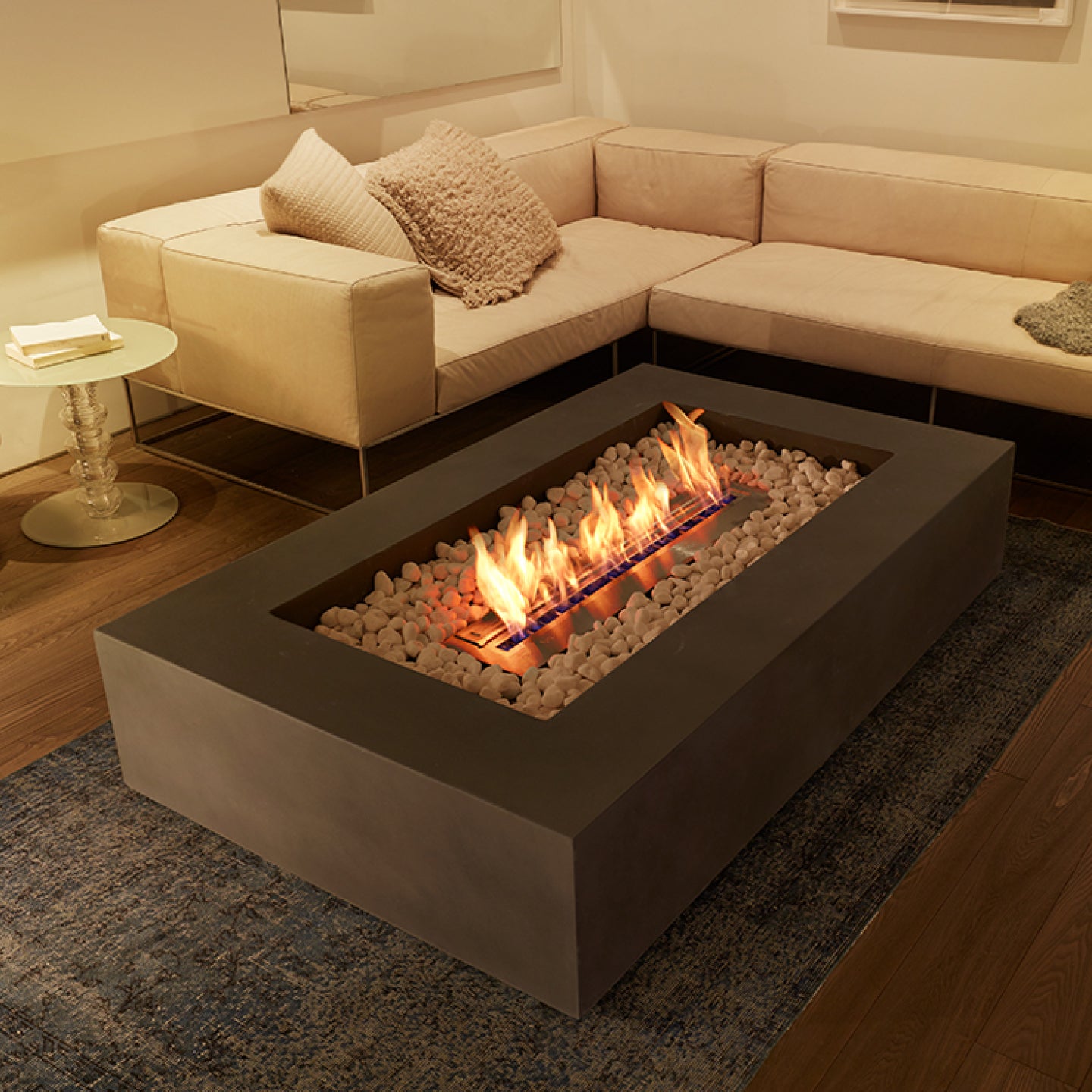 concrete: Fluid Concrete Technology, Grade304 Stainless Steel, Included Black Glass Charcoal, Toughened Glass/ teak: Fluid Teak,Grade 304 Stainless Steel,Burner,Toughened Glass Fire Screen