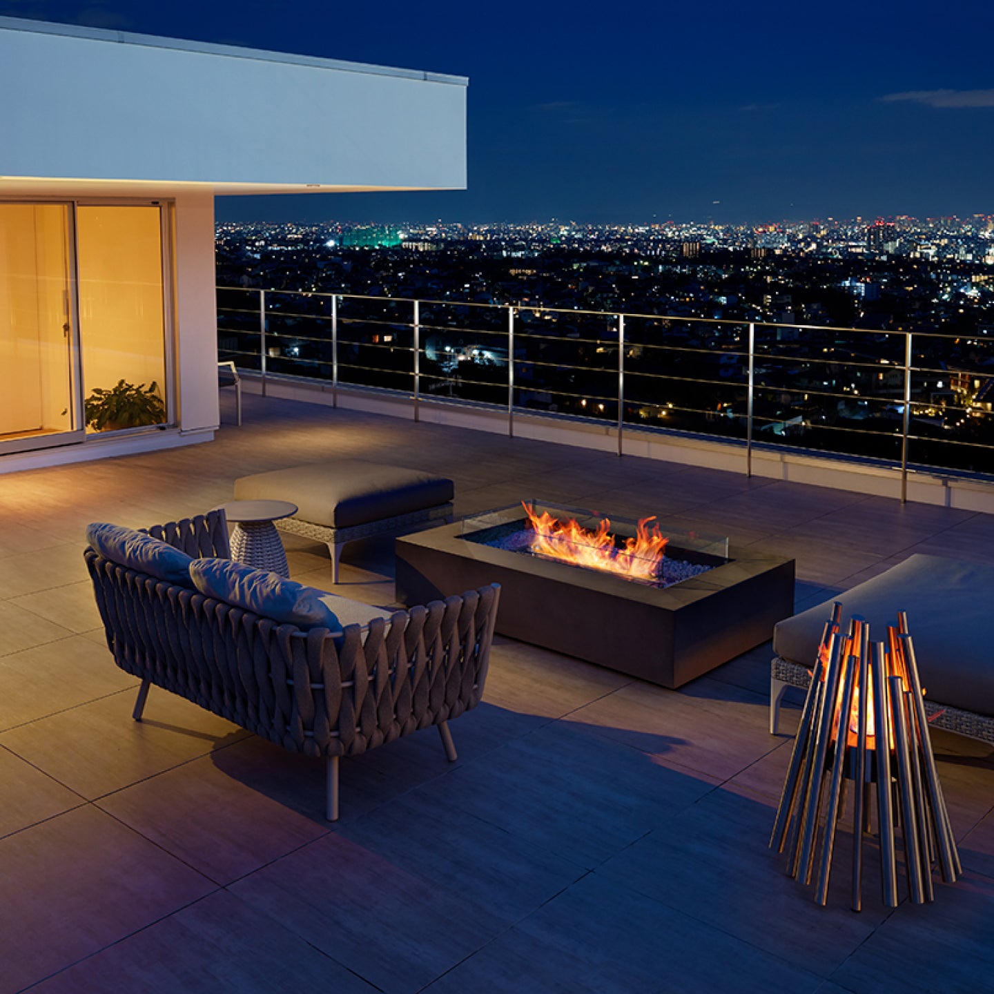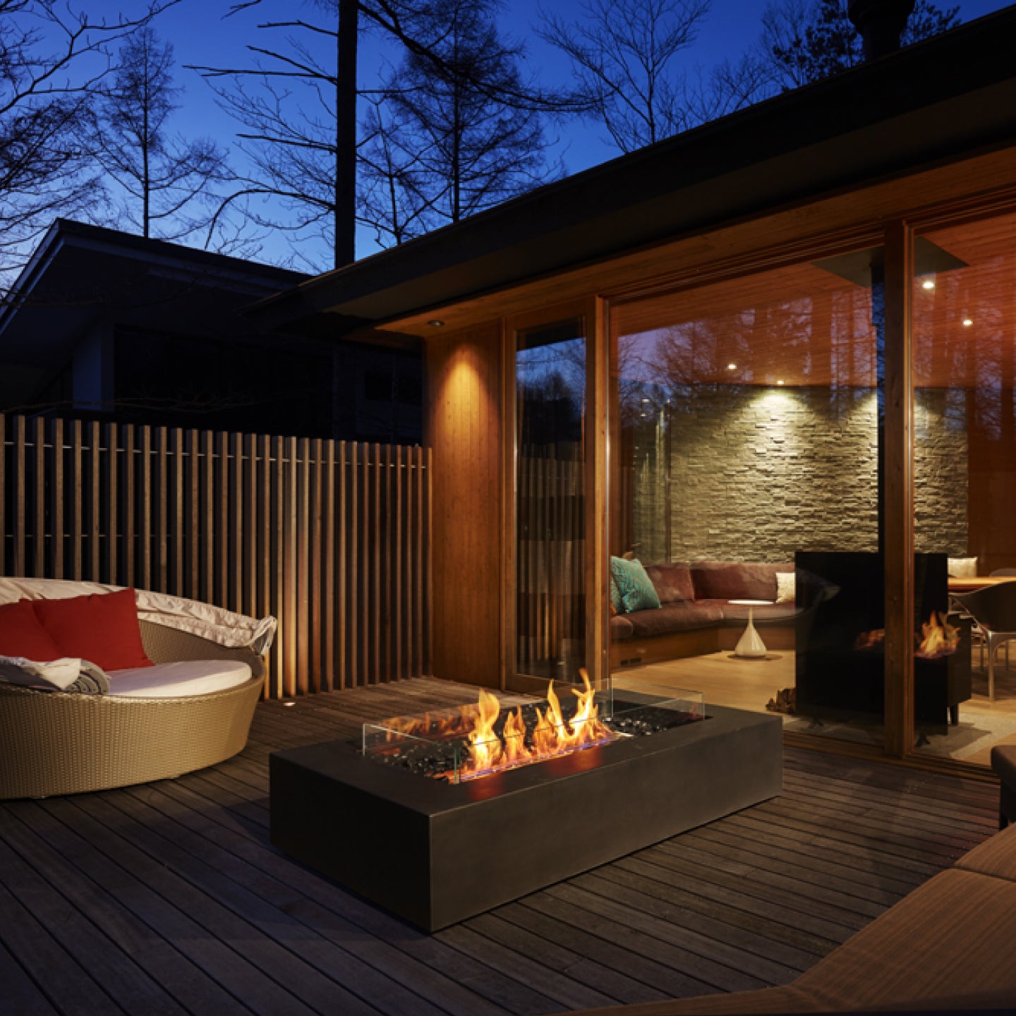 에코스마트 파이어 ‘Wharf 65’는 이 시리즈 중에서도 사이즈가 크고 중후해 주택의 대형 테라스, 호텔 등의 상업 시설에서 인기 있는 제품입니다. 티크 또는 콘크리트로 제작된 본체 부분과 스테인리스로 제작된 XL900 버너로 구성돼 있기 때문에 다른 제품과 달리 가로 방향으로 길고 아름다운 불꽃을 연출합니다. 본체 부분은 열, 비, 바람에 강해 실내 공간과 실외 공간에서 모두 사용하실 수 있습니다. 티크 색상이 새롭게 추가돼 티크와 콘크리트 마감 중에서 선택하실 수 있습니다. 콘크리트는 콘크리트 색상을 모티브로 한 ‘Natural’, 블랙의 ‘Graphite’, 화이트의 ‘Bone’까지 세 가지 색상이 준비돼 있습니다. 공간에 맞춰 원하시는 색상을 선택해 주십시오. 버너 주위에 까는 검은색 유리숯과 유리 스크린이 표준 장비돼 있습니다. 별도로 판매되는 Protective Cover를 덮으면 사용하지 않을 때에도 제품을 깨끗하게 유지할 수 있습니다. 바이오에탄올 난로는 아름다운 오렌지색 불꽃을 연출합니다. 난방능력이 높고 연소 시 수증기가 발생하므로 가습 효과도 있습니다.
