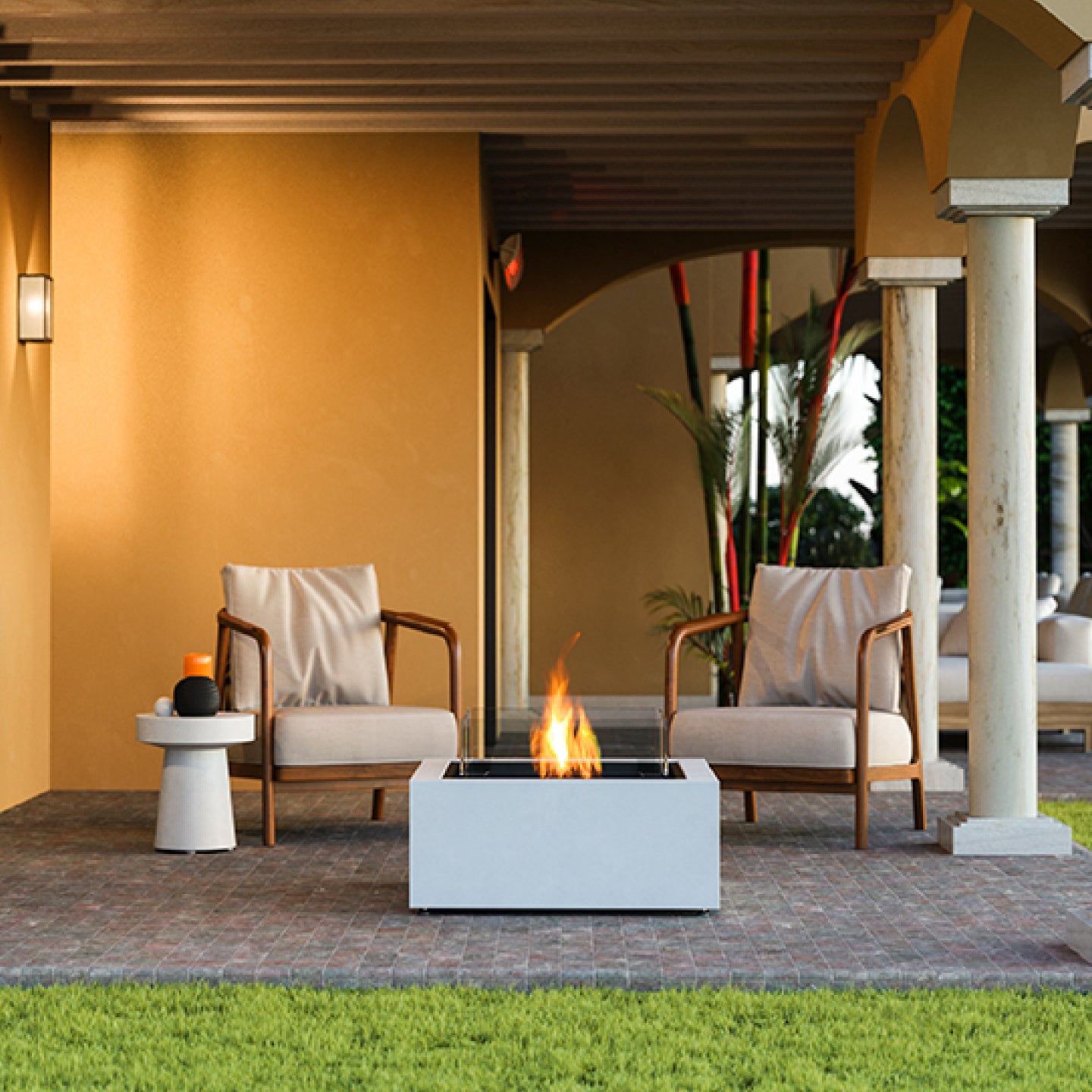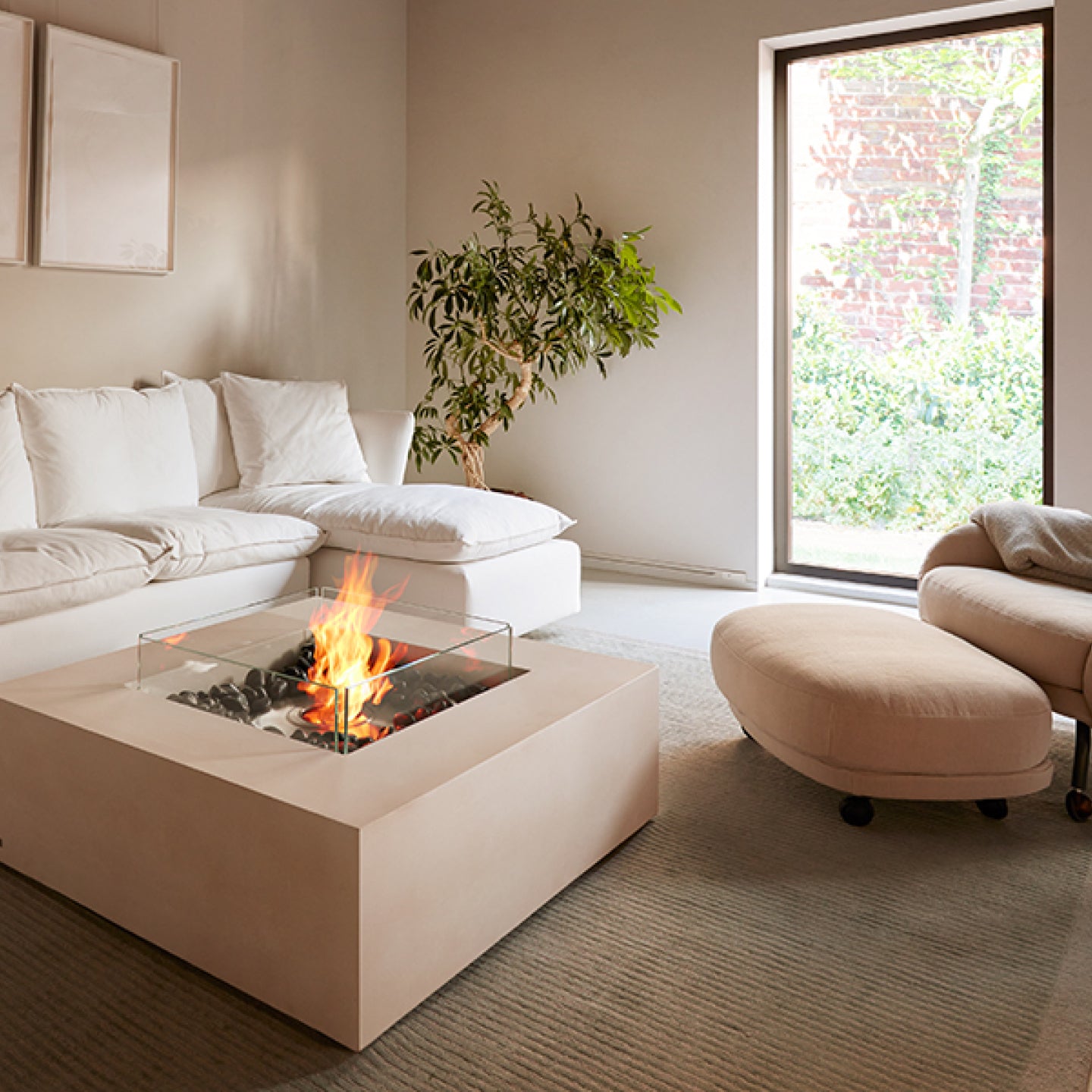 에코스마트 파이어 ‘Base Series’은 스퀘어형 콘크리트로 제작된 본체 부분과 스테인리스로 제작된 AB버너로 구성돼 있습니다. 본체의 콘크리트 부분은 열, 비, 바람에 강해 실내 공간과 실외 공간에서 모두 사용하실 수 있습니다. 티크 색상이 새롭게 추가돼 티크와 콘크리트 마감 중에서 선택하실 수 있습니다. 콘크리트는 콘크리트 색상을 모티브로 한 ‘Natural’, 블랙의 ‘Graphite’, 화이트의 ‘Bone’까지 세 가지 색상이 준비돼 있습니다. 별도로 판매되는 Protective Cover를 덮으면 사용하지 않을 때에도 제품을 깨끗하게 유지할 수 있습니다. 바이오에탄올 난로는 아름다운 오렌지색 불꽃을 연출합니다. 난방능력이 높고 연소 시 수증기가 발생하므로 가습 효과도 있습니다.