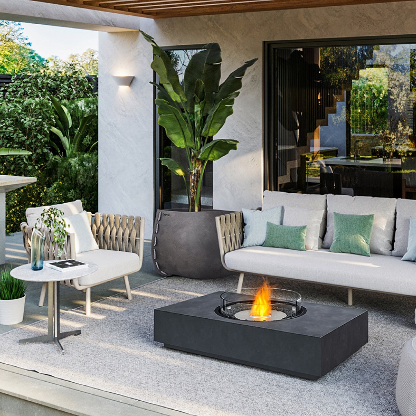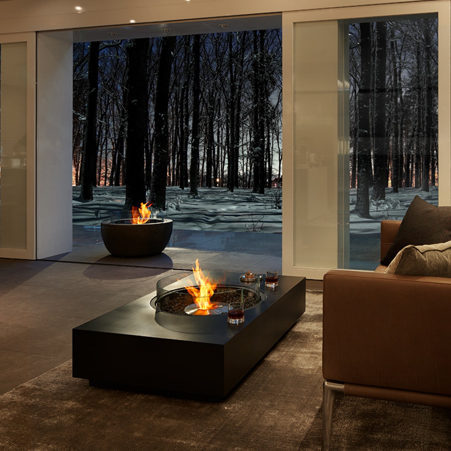 일본 주택에 적합한 사이즈로 개발된 에코스마트 파이어 ‘Martini 50’은 2018년에 출시된 제품입니다. 일본 주택의 거실과 테라스 등에 널리 적용할 수 있는 W1270×D762 사이즈의 제품입니다. 내장 버너는 ‘AB3’ 버너를 채용했습니다. 약 24㎡의 공간을 따뜻하게 할 수 있으며, 낮은 테이블로도 사용할 수 있습니다. 주택은 물론 호텔 등의 테라스에 여러 대 설치하는 등 다양한 방법으로 사용할 수 있습니다. 버너를 설치하는 부품은 검은색 스틸 소재를 채용했습니다. 티크 또는 콘크리트와 블랙스틸의 디자인이 특징적입니다. 본체 부분은 열, 비, 바람에 강해 실내 공간과 실외 공간에서 모두 사용하실 수 있습니다. 티크 색상이 새롭게 추가돼 티크와 콘크리트 마감 중에서 선택하실 수 있습니다. 콘크리트는 콘크리트 색상을 모티브로 한 ‘Natural’, 블랙의 ‘Graphite’, 화이트의 ‘Bone’까지 세 가지 색상이 준비돼 있습니다. 공간에 맞춰 원하시는 색상을 선택해 주십시오. 버너 주위에 까는 검은색 유리숯과 유리 스크린이 표준 장비돼 있습니다. 별도로 판매되는 Protective Cover를 덮으면 사용하지 않을 때에도 제품을 깨끗하게 유지할 수 있습니다. 바이오에탄올 난로는 아름다운 오렌지색 불꽃을 연출합니다. 난방능력이 높고 연소 시 수증기가 발생하므로 가습 효과도 있습니다.