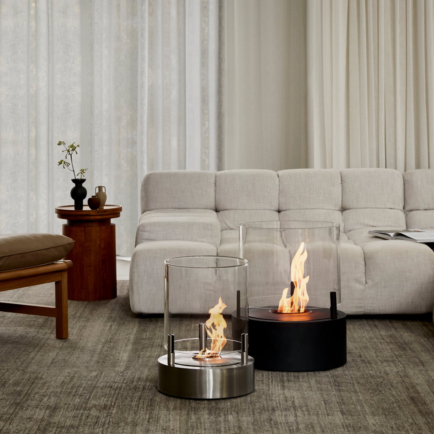 에코스마트 파이어 ‘T-Lite ’은 스테인리스와 내열강화유리를 조합해 디자인된 심플한 제품입니다. 원통형 유리로 디자인돼 있기 때문에 360도 어느 각도에서나 아름다운 불꽃을 감상할 수 있습니다. 실내와 실외에서 모두 사용할 수 있으며, 소형으로 설계돼 있기 때문에 주거 공간에서 이동 가능한 휴대성도 인기 포인트 중 하나입니다. 별도로 판매되는 Protective Cover를 덮으면 사용하지 않을 때에도 제품을 깨끗하게 유지할 수 있습니다. 바이오에탄올 난로는 아름다운 오렌지색 불꽃을 연출합니다. 난방능력이 높고 연소 시 수증기가 발생하므로 가습 효과도 있습니다.