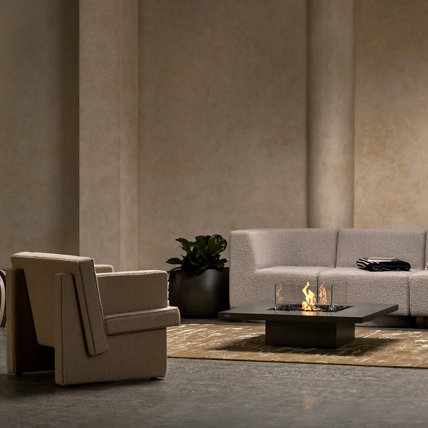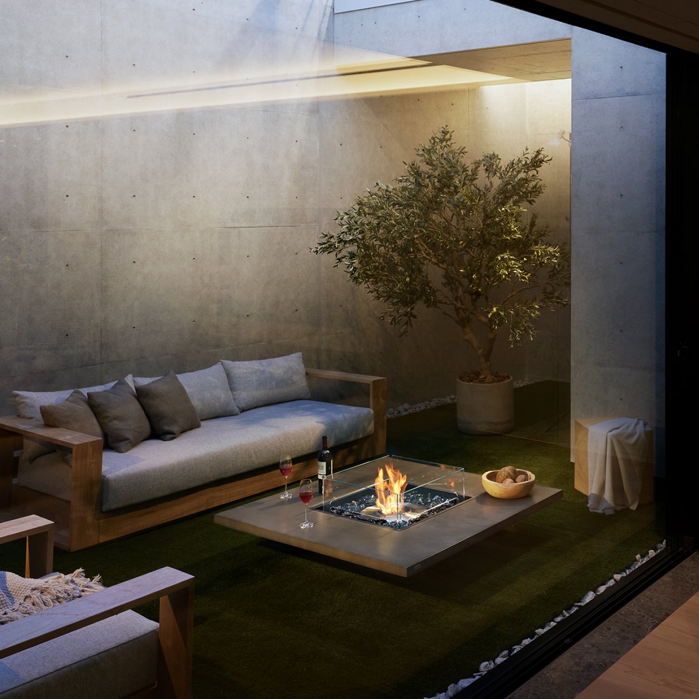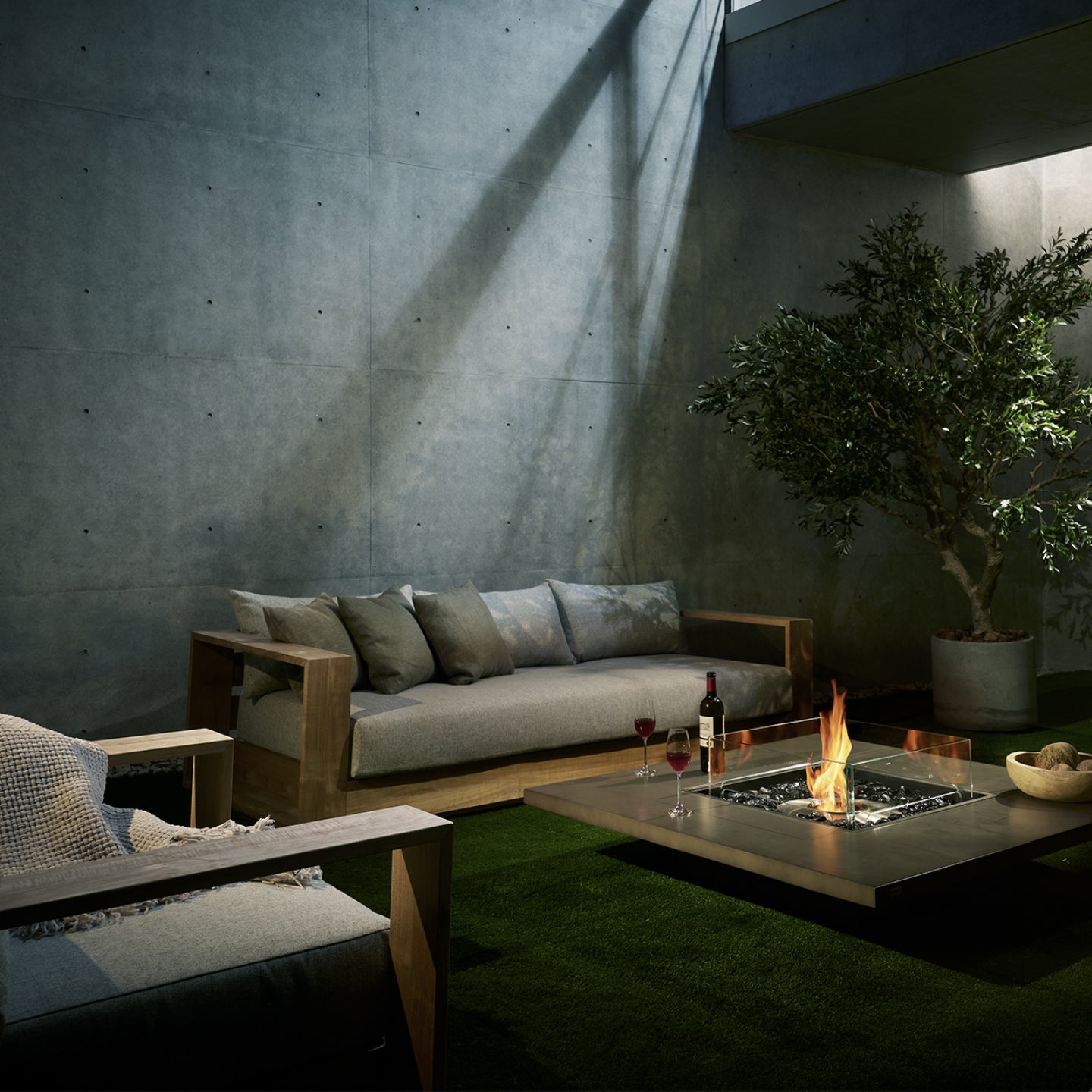 콘크리트 일체형으로 제작되어 번거로운 조립작업이 필요 없는 테이블형 난로입니다. 정사각형 상판 중앙에 AB시리즈 버너가 내장되어 있어, 테이블 주변에 둘러 앉아 불꽃을 즐길 수 있습니다. 테이블 높이 역시 24cm로 낮게 설계되어, 개방감 있는 탁트인 리빙공간에 추천합니다.